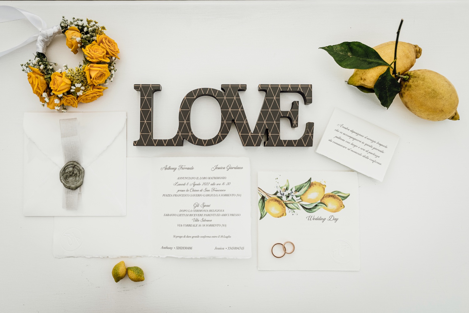 Anthony and Jessica’s wedding was an unforgettable event, an experience that left an indelible mark in the hearts of everyone present. A perfect combination of elegance, love and creativity, which will remain in the memories of anyone who had the privilege of participating in this magical day in Sorrento.