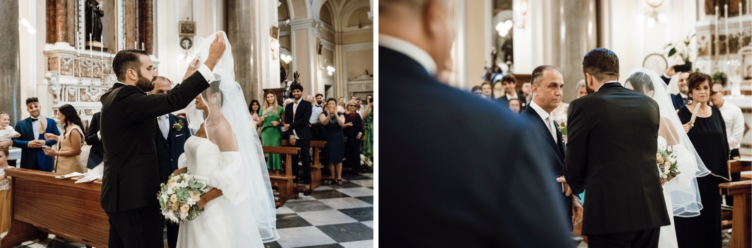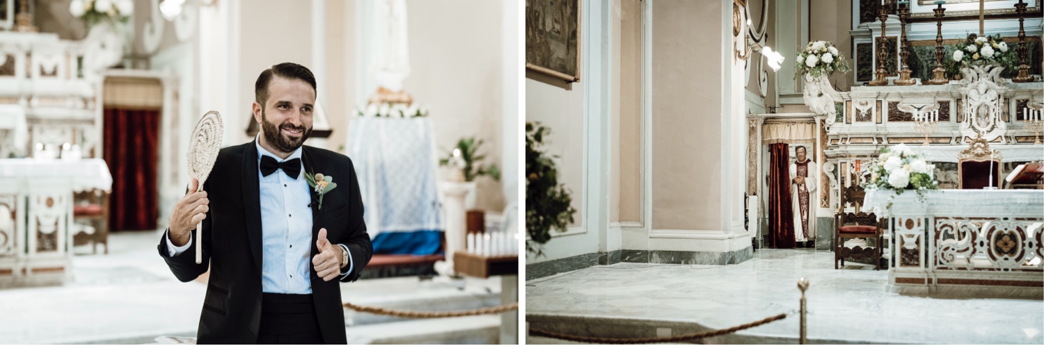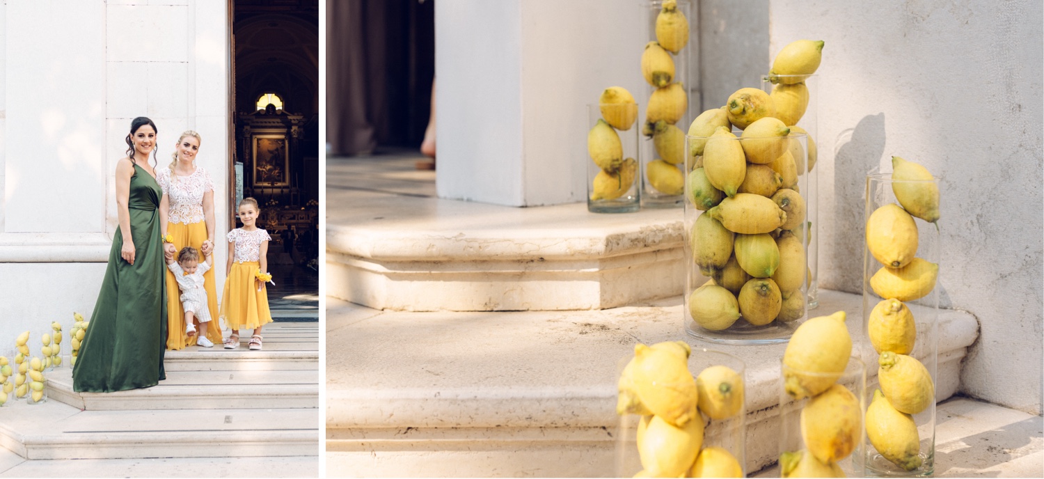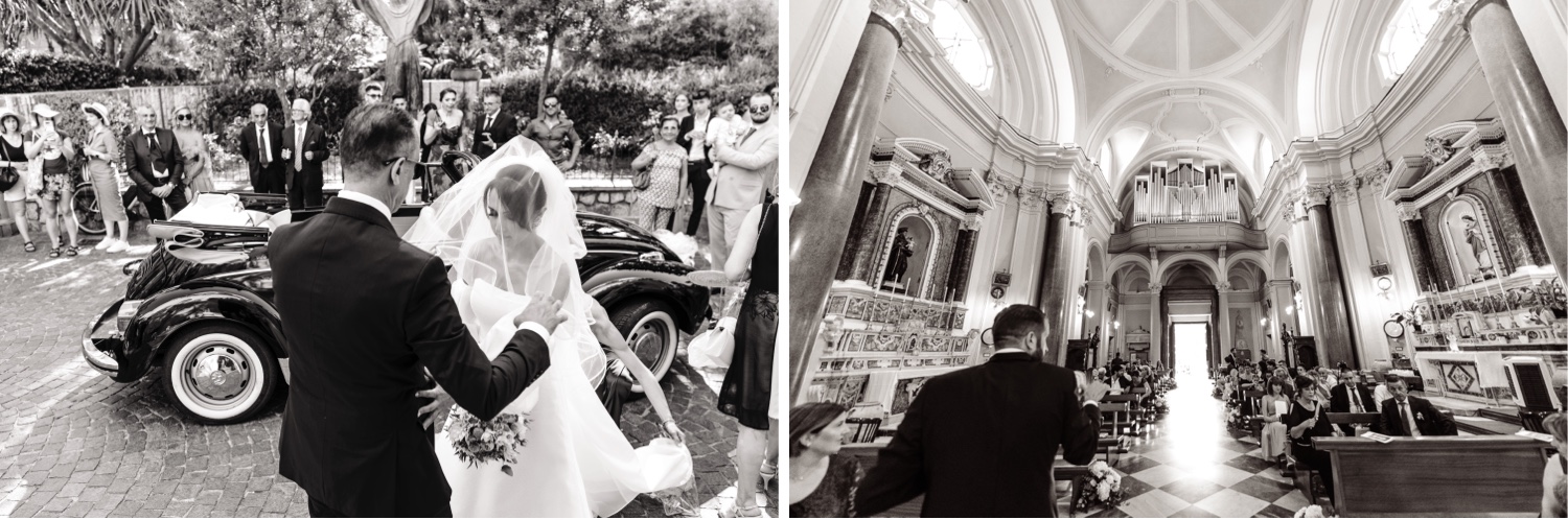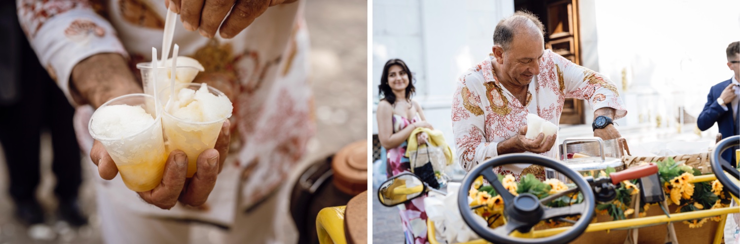 The chosen location, the splendid Villa Silvana with its breathtaking view of the Gulf of Sorrento, provided the perfect backdrop for this special day. The ceremony, held in the charming church of San Francesco, was characterized by the thoughtfulness of the spouses who welcomed the guests with a typical lemonade cart, offering a moment of refreshment on a hot August day.