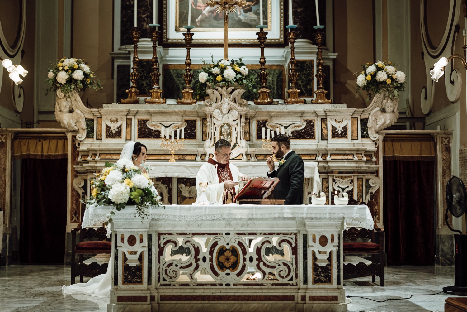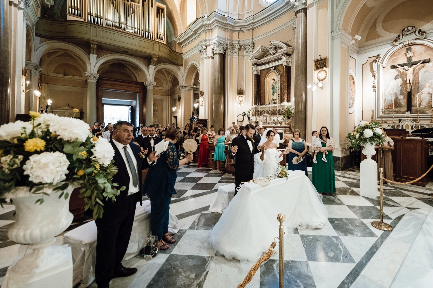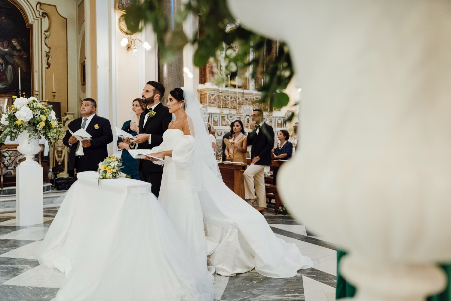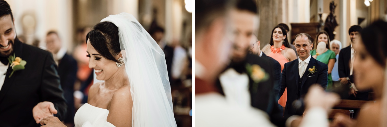 The chosen location, the splendid Villa Silvana with its breathtaking view of the Gulf of Sorrento, provided the perfect backdrop for this special day. The ceremony, held in the charming church of San Francesco, was characterized by the thoughtfulness of the spouses who welcomed the guests with a typical lemonade cart, offering a moment of refreshment on a hot August day.