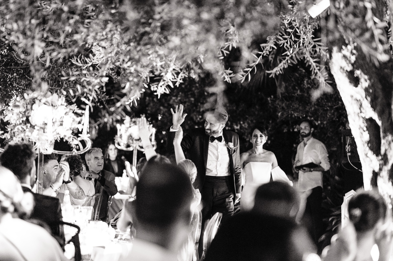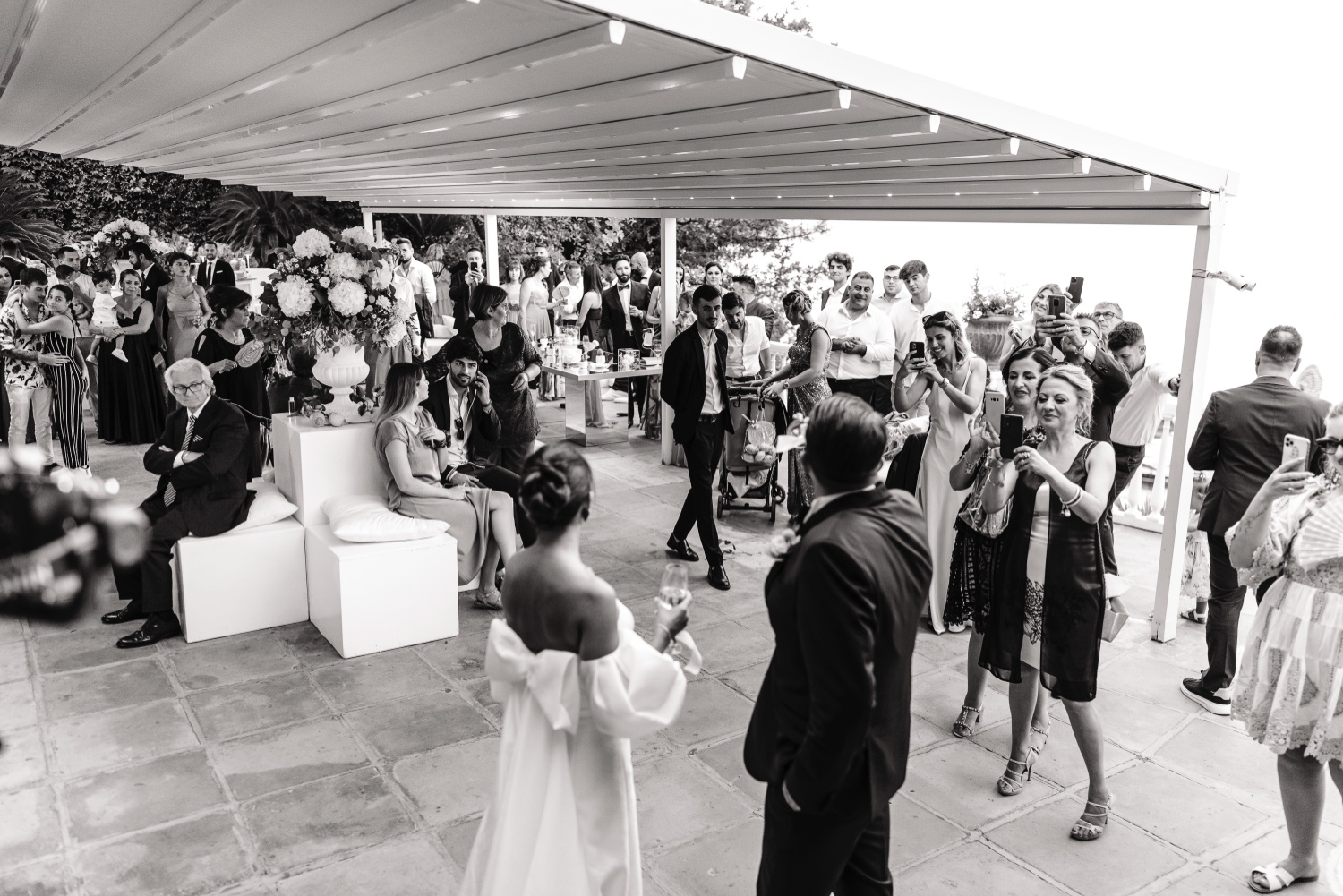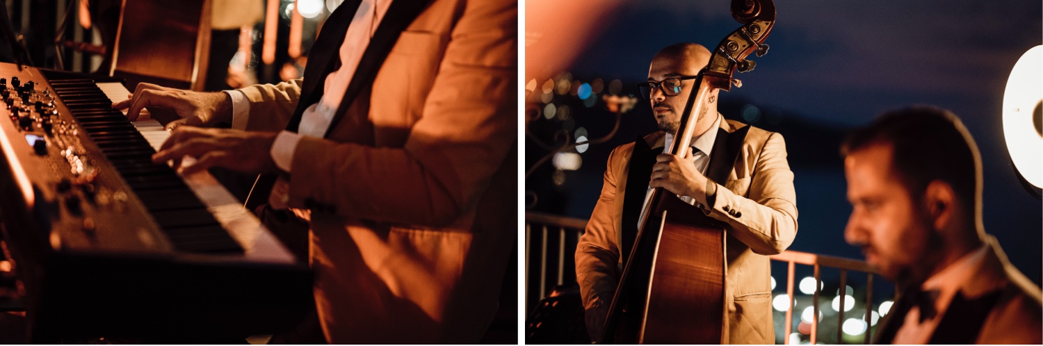 The reception and gourmet dinner, organized by MDS Ricevimenti and entirely based on marine delicacies, delighted those present in a magical atmosphere illuminated by candles and with the backdrop of the sea.