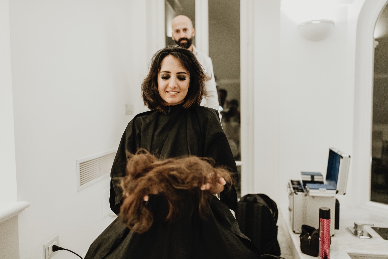 But the boldest surprise came during the cutting of the cake, when Jessica completely changed her look, shocking the guests with an impromptu new haircut. A bold and unexpected gesture that added a touch of originality and creativity to the wedding.