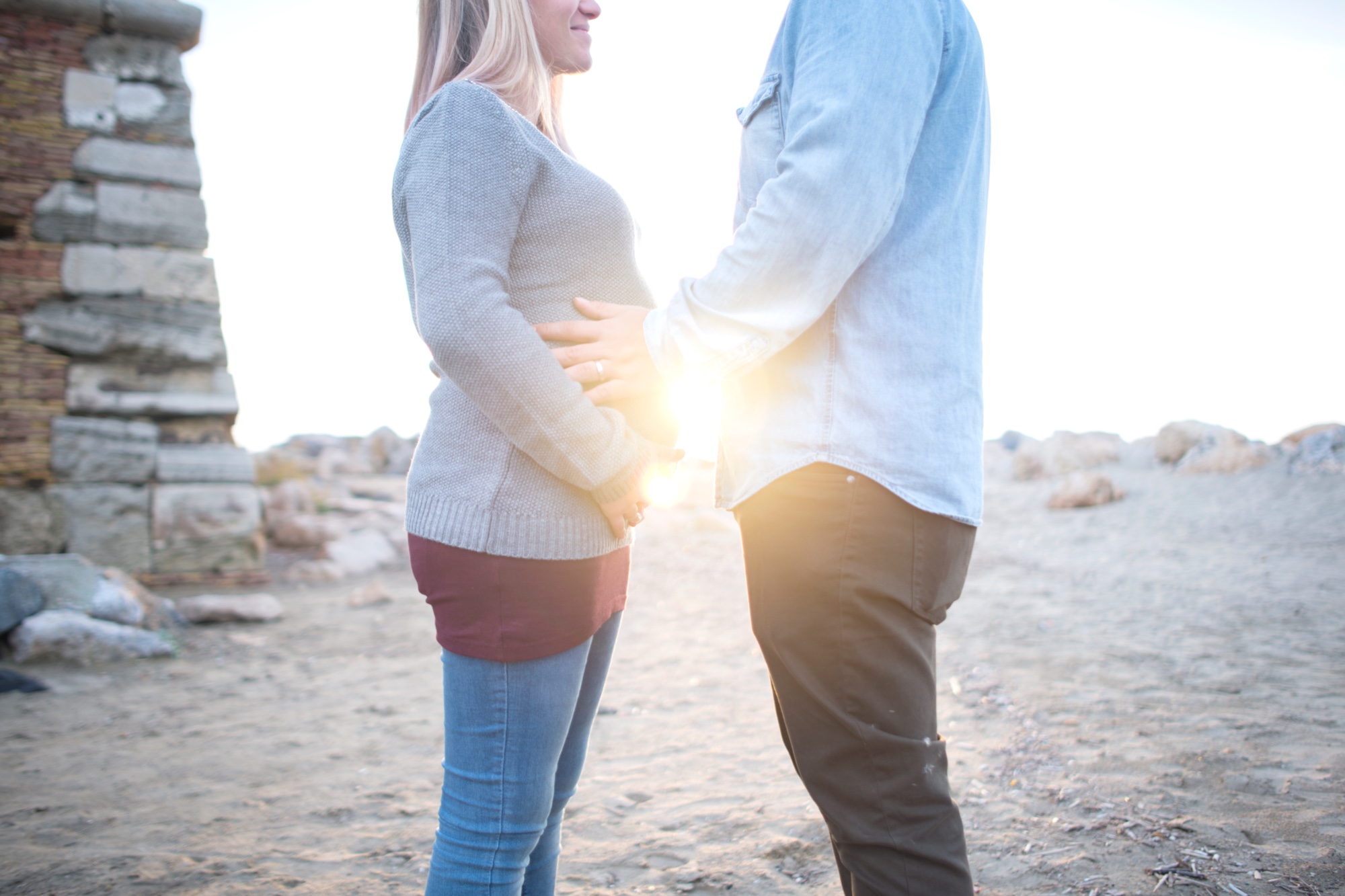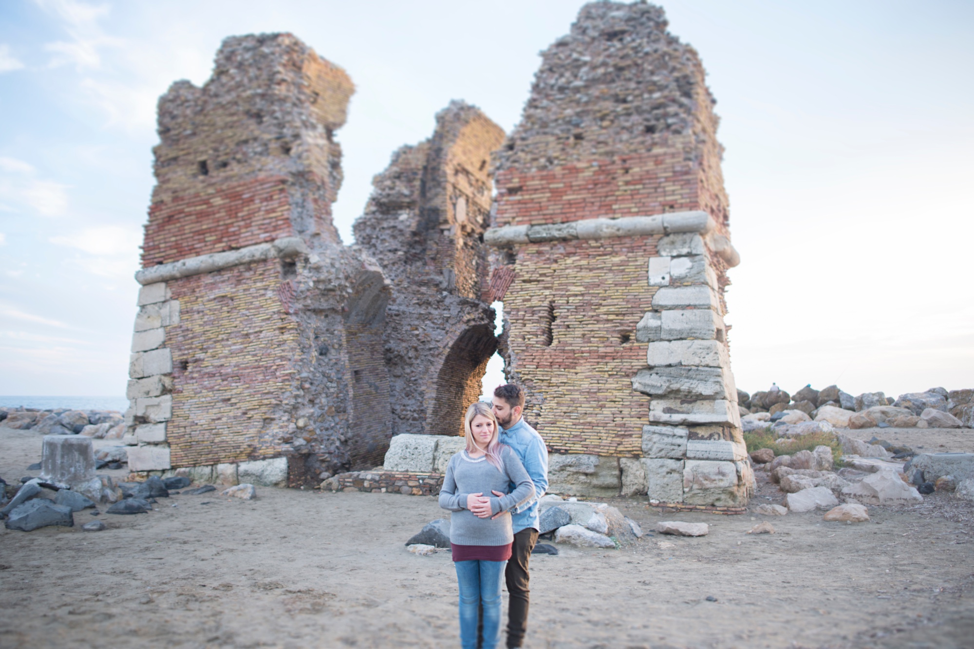 The Torre Flavia, with its ancient structure and on the beach of Cerveteri, was the perfect location for this maternity photo shoot. The couple chose this place not only for its beauty, but because it represents an important part of their journey together.