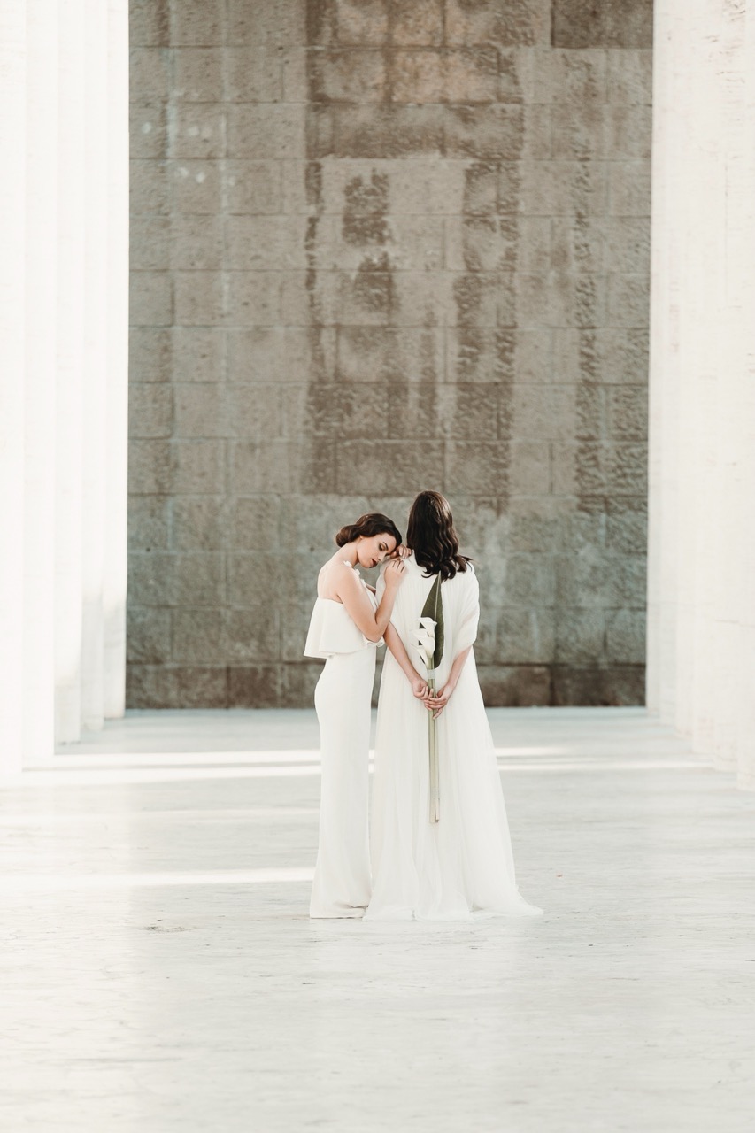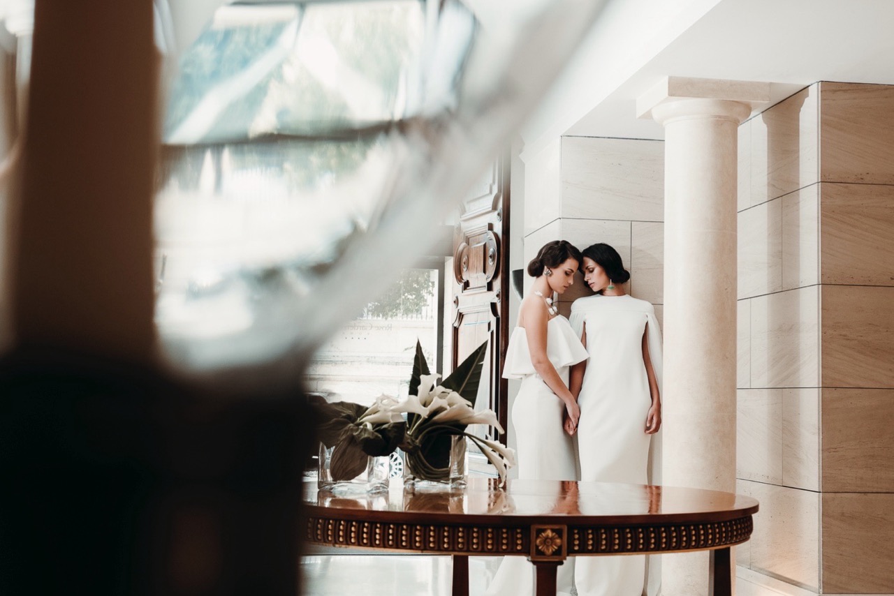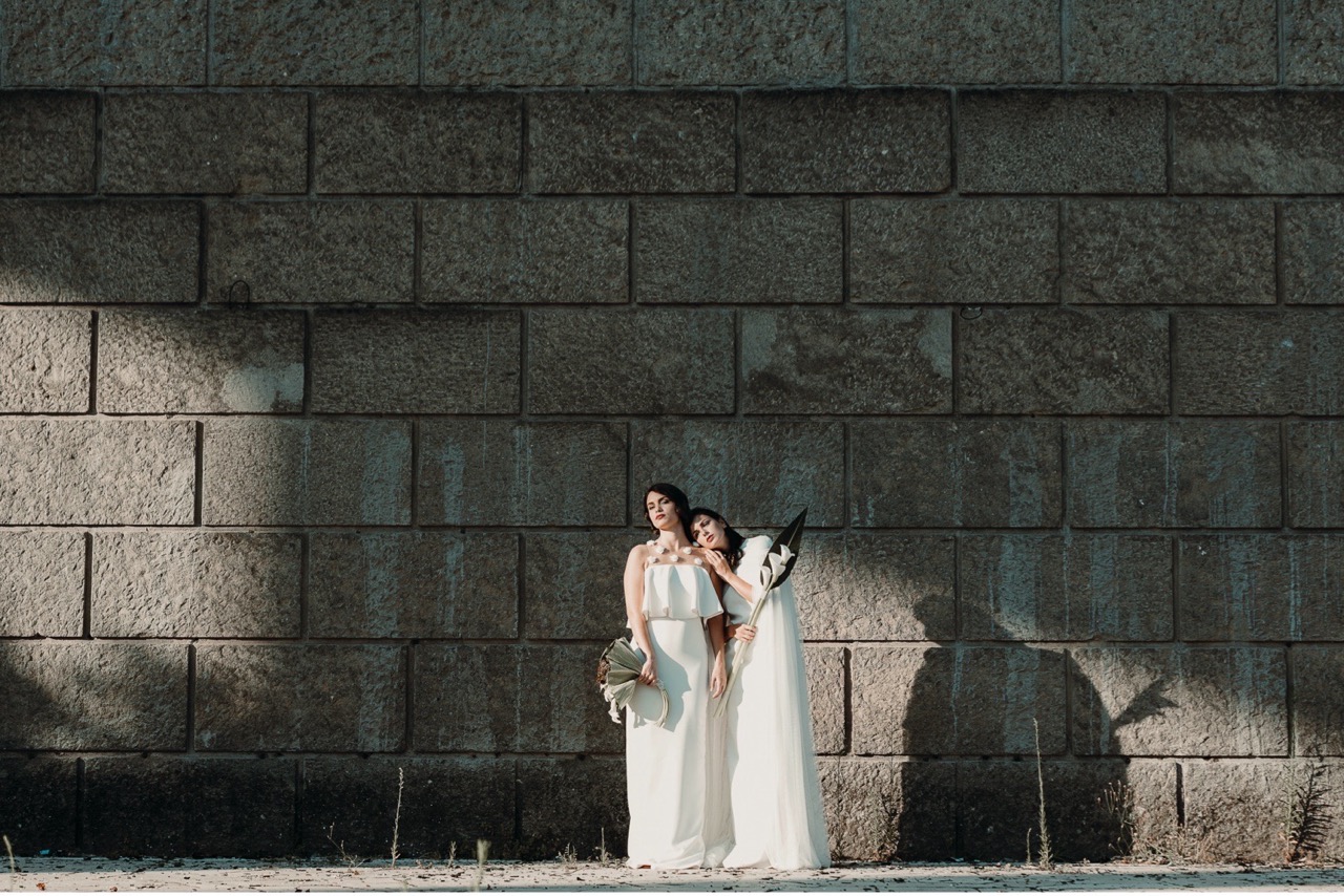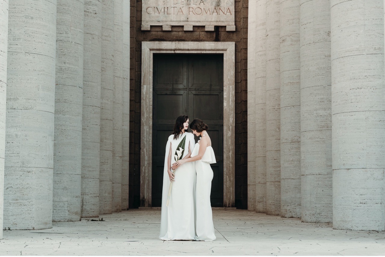 Due spose, immerse in una Roma meno conosciuta ma autentica nel loro rigore formale, che incarna i tagli geometrici della sua architettura, luci e ombre, elementi e materiali dello stile pittorico di Tamara e della sua epoca.