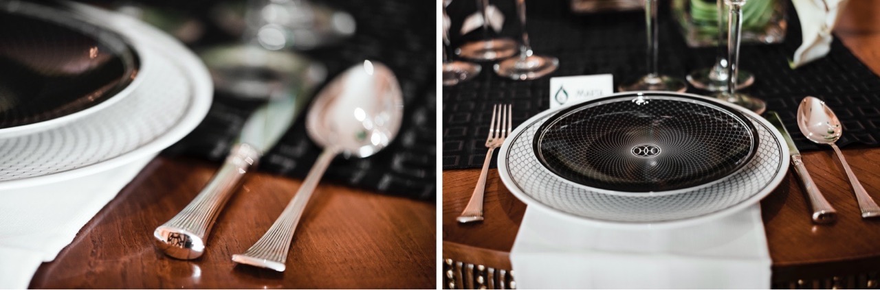 La splendida linea di Hermès H Decò, gentilmente concessa da Limentani, si ispirata fregi in ferro battuto art decò e, con il suo stile elegante e raffinato, si inserisce perfettamente negli spazi del Rose Garden Palace di Roma, dove gli arredi sono un mix di stili etnico e moderno, con elementi neoclassici.